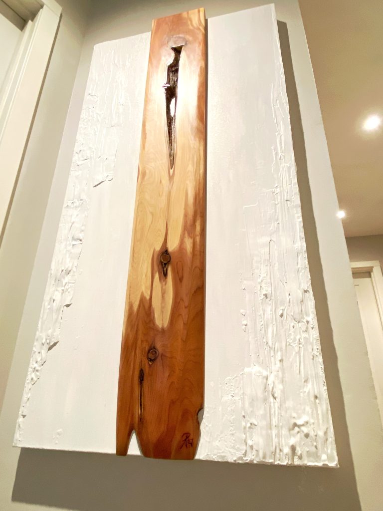 For as long as I can remember I have always been drawn to art and the joy of creation. I can still hear my mom calling me to dinner as a child and being so deep in the drawing I was creating that I could not be bothered to eat till I finished. Later I felt called to carpentry. I recall the sweet smell of sawdust as my grandfather crafted toys and guitars in his woodshop. Whether working on a fine art piece or creating a custom wall installation my heart still feels that feeling of flow and connection that lets me know I am right where I want to be!
